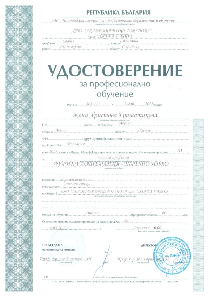 Притежавани сертификати/удостоверения